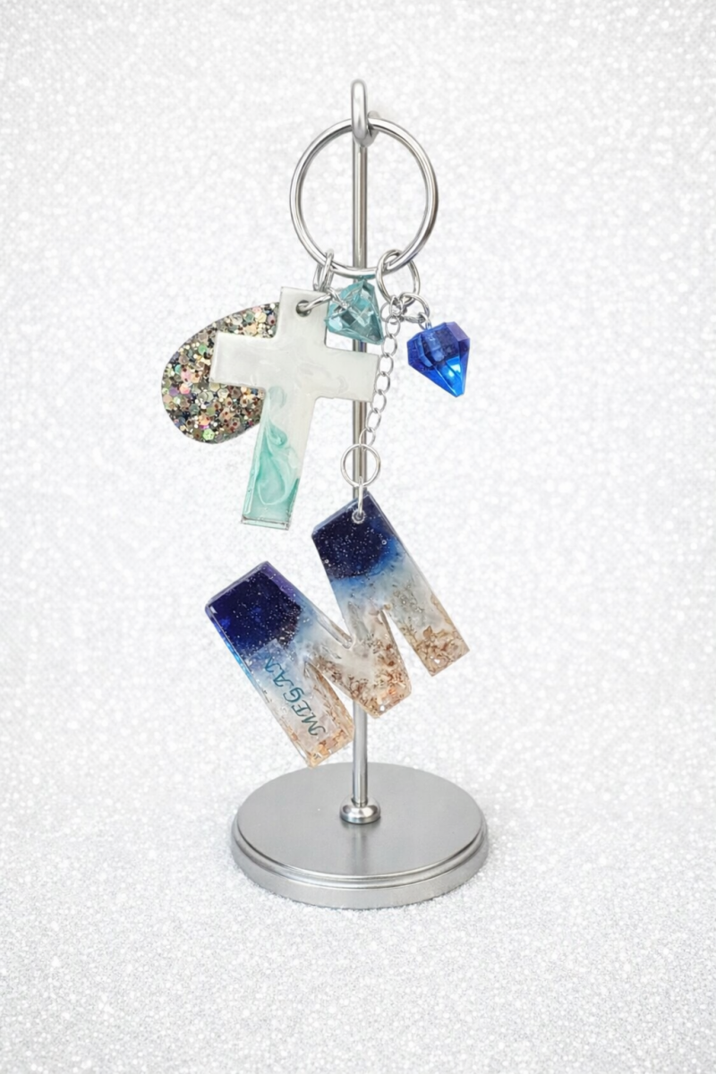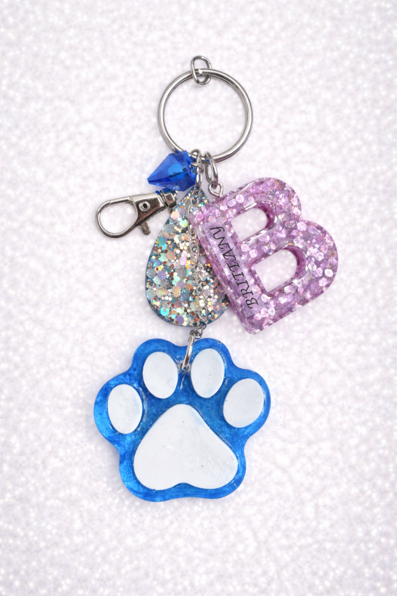 One of my favorite things to make right now are custom keychains with personalized names and paw prints. They’re perfect for school mascots, pet lovers, or anyone who wants something made just for them. I also like experimenting with different themes and color styles, from beachy vibes and school colors to bright sparkles and custom color combinations.
