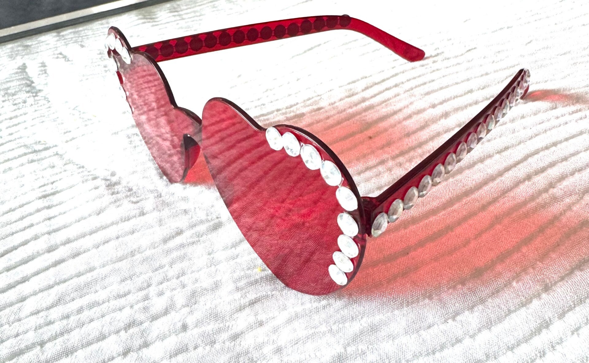 Red Heart Rhinestone Sunglasses – Statement Festival & Game Day Shades